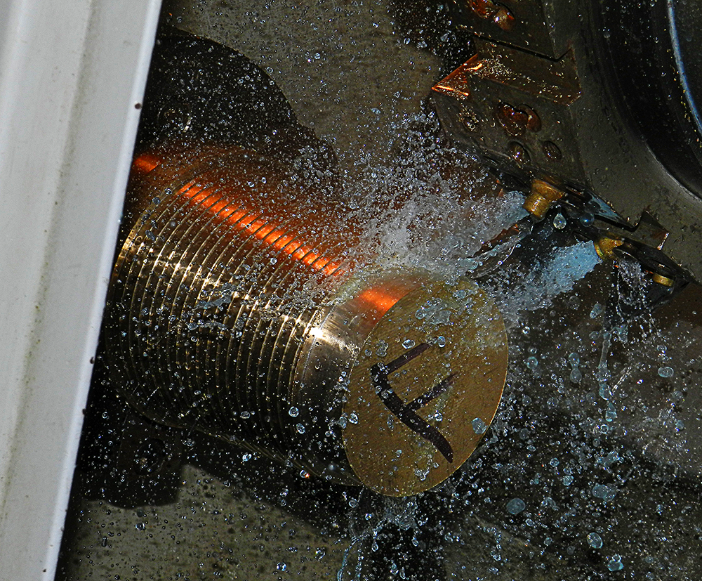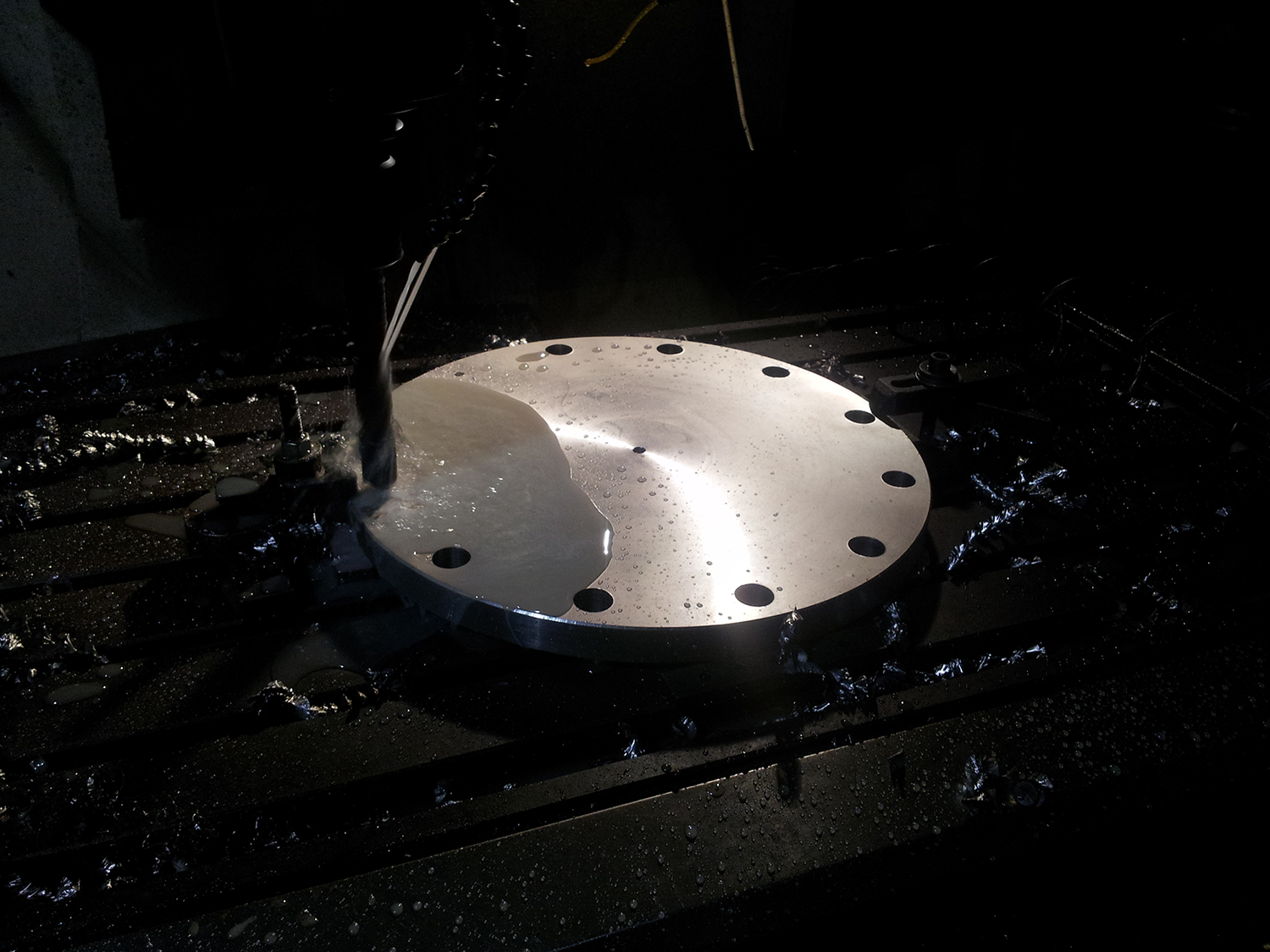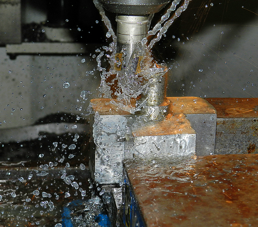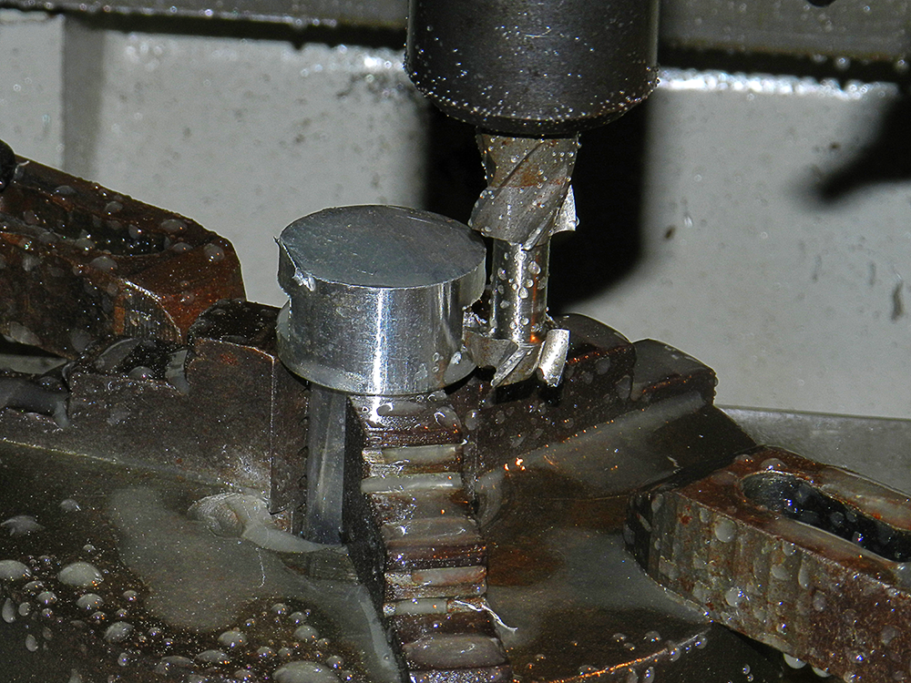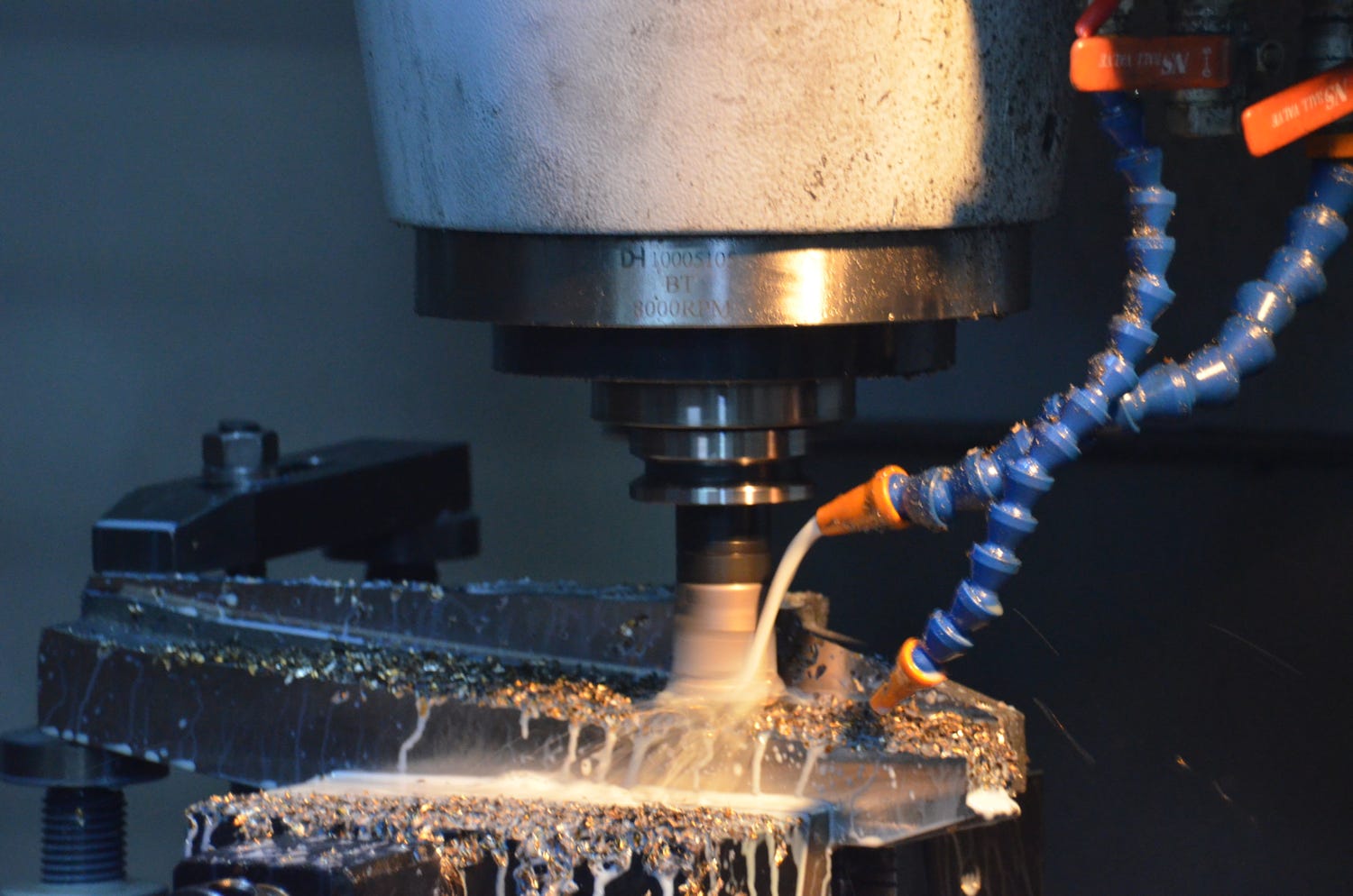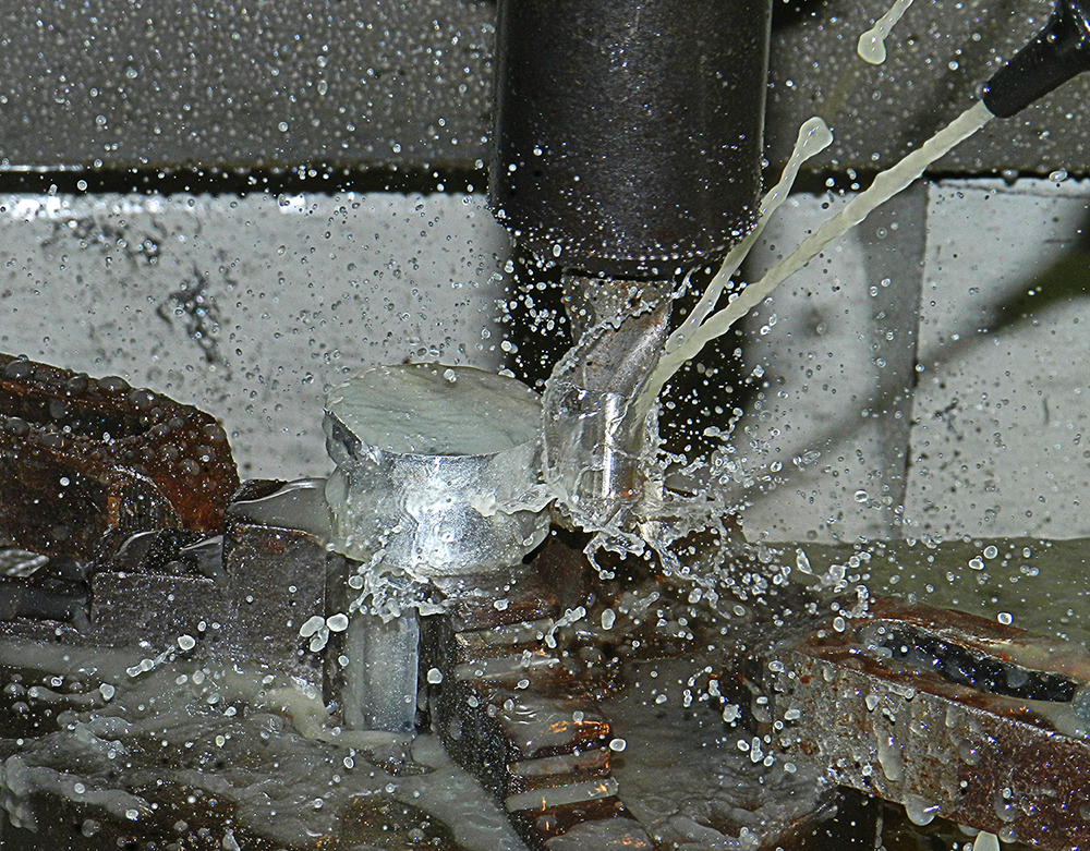 • Metalworking CNC milling machine. Cutting metal modern processing technology. Small depth of field. Warning - authentic shooting in challenging conditions. A little bit grain and maybe blurred.
